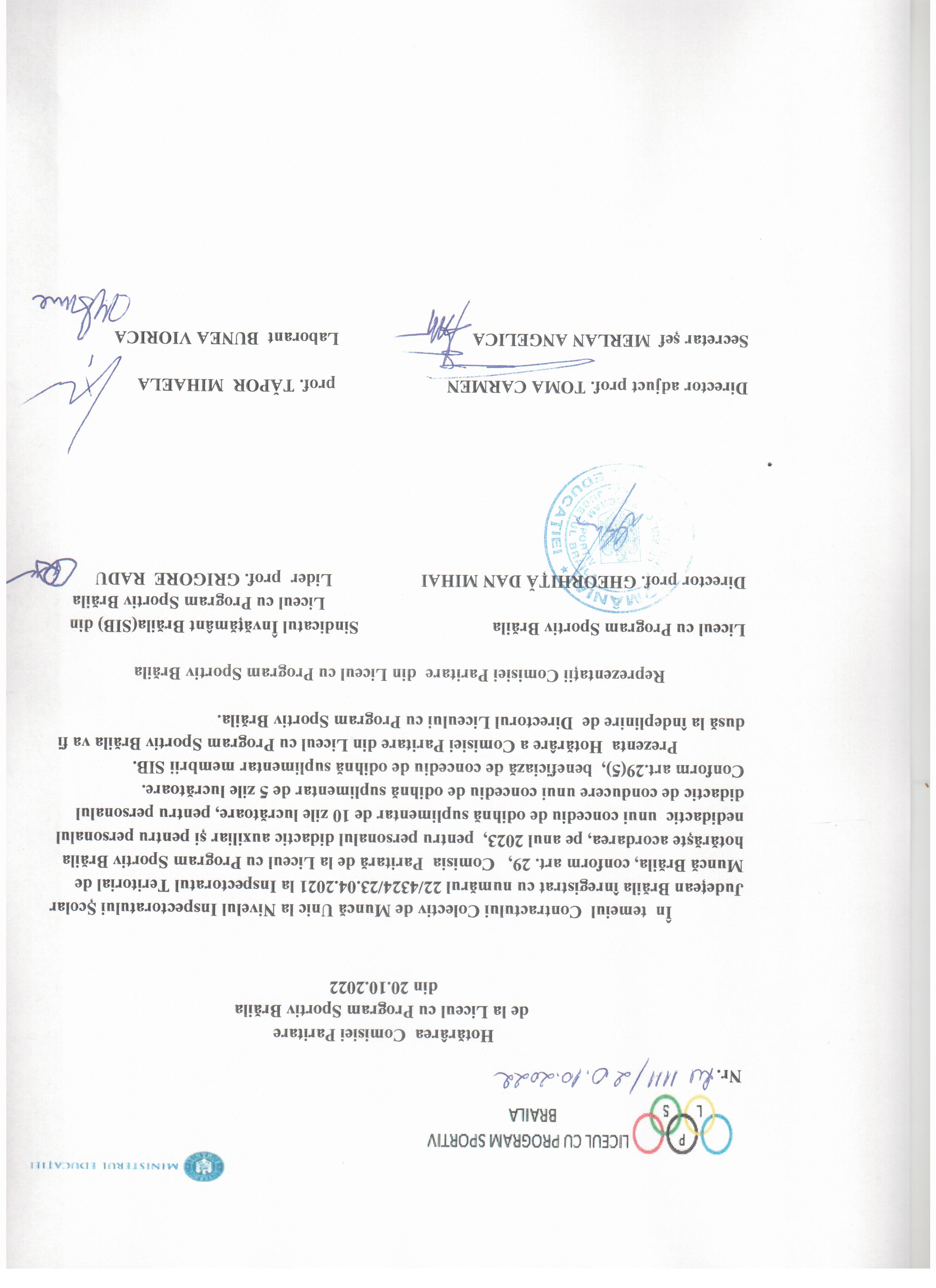 Hotărâre Comisie Paritară LPS Băila din 20.10.2022, zile de concediu de odihnă suplimentar pe 2023. descarca fisierul Publicat la 31.10.2022 - 13:57:33